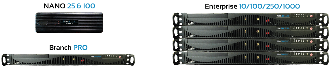 Echtzeitquarantäne von Zero-hour-Malware und Phishing-Attacken, MAC-Spoofing-Erkennung, TLD-Sperrung, umfassendes Auditing, Schwachstellenanalyse und Compliance-Reportings und -Durchsetzung runden dieses überzeugende Gesamtpaket ab. Die NetSHIELD-Appliance sichert zwischen 25 und 10.000 Arbeitsplätze, während über die integrierte zentrale Verwaltungskonsole Command Center bis zu 1.000 Standorte via Fernwartung betreut werden können.